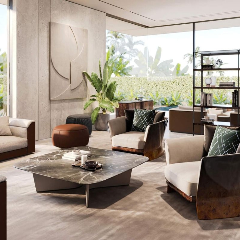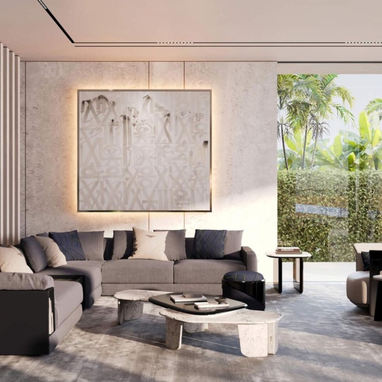 This 5-bedroom waterfront villa spans approximately 7,212 sqft and is delivered fully furnished by Bentley Home, featuring iconic Italian craftsmanship inspired by the British automotive legend. Every detail has been meticulously curated, offering a seamless blend of luxury, privacy, and timeless design.
